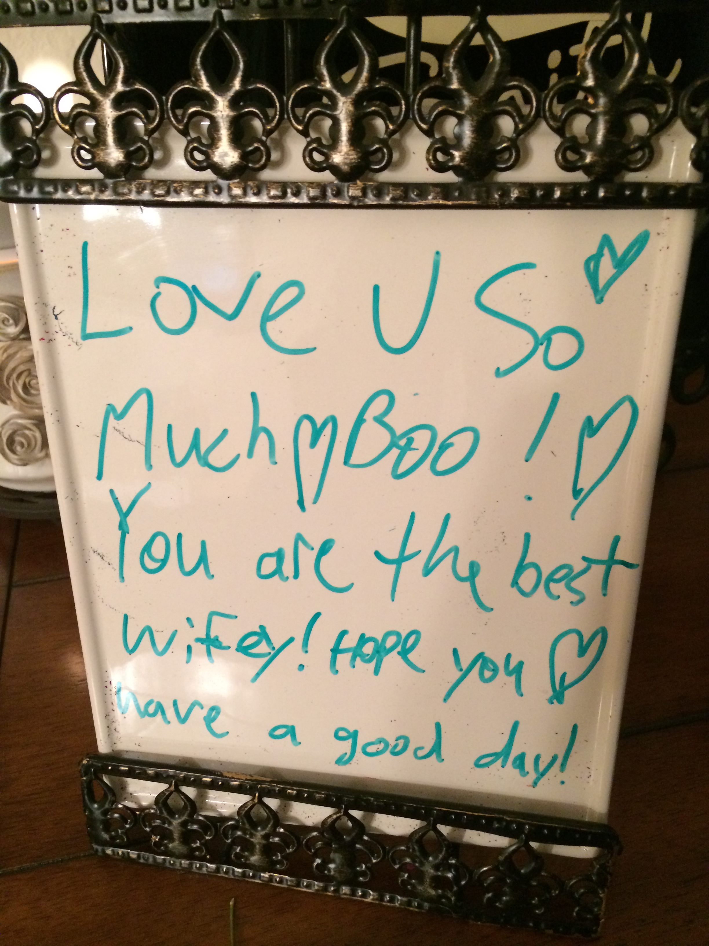 We started asking this question. Most of the time, our answers were that both of our love tanks were full. Every now and then I would say 8 or 9. Hubs would ask me how to make it full. I would tell him, I didn’t like how he hasn’t given me his undivided attention. He would be caught up on his cell phone or the T.V. or he hasn’t offered to help me with household chores. He obviously can’t read my mind! And he would say that I wasn’t giving him the appropriate attention or how I get angry with him for not knowing where the silverware or mugs go. (I mean we have been living there for months!) The question was a great transition for open communication in a non-threatening way. It wasn’t me yelling at him to shut the T.V. off or him yelling at me about the mugs, it was a reflection of our week. How we can best serve one another. If you just listen to your spouse, they are telling you how to do that. Hubs started giving me more attention and I stopped yelling at him about where the mugs should go. It’s a compromise. We both have the same end goal: to make one another happy.