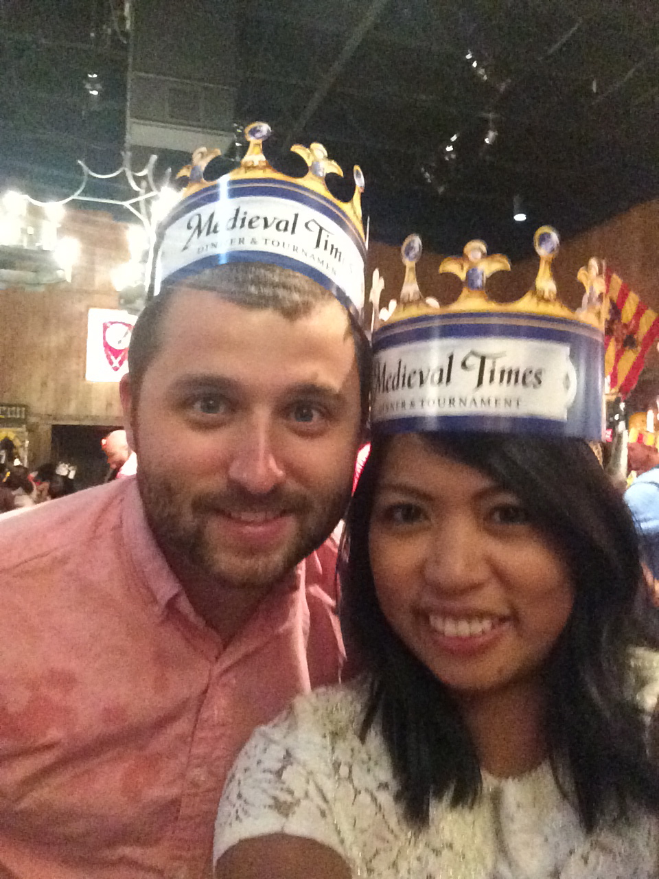 We spent the afternoon soaking up the sun on the beach. This isn’t our everyday life. We were going to take advantage of this time. For dinner, we went to the Medieval Times Dinner and Tournament. We rooted for the blue knight to win all the games while eating ribs and chicken with our hands. Our knight ended up being killed in battle We battled with spending the money for it. At $40 per person (with a discount) it was a bit pricey, but the show definitely was entertaining and I was surprised the food wasn’t bad. Also, we got these fancy crowns.