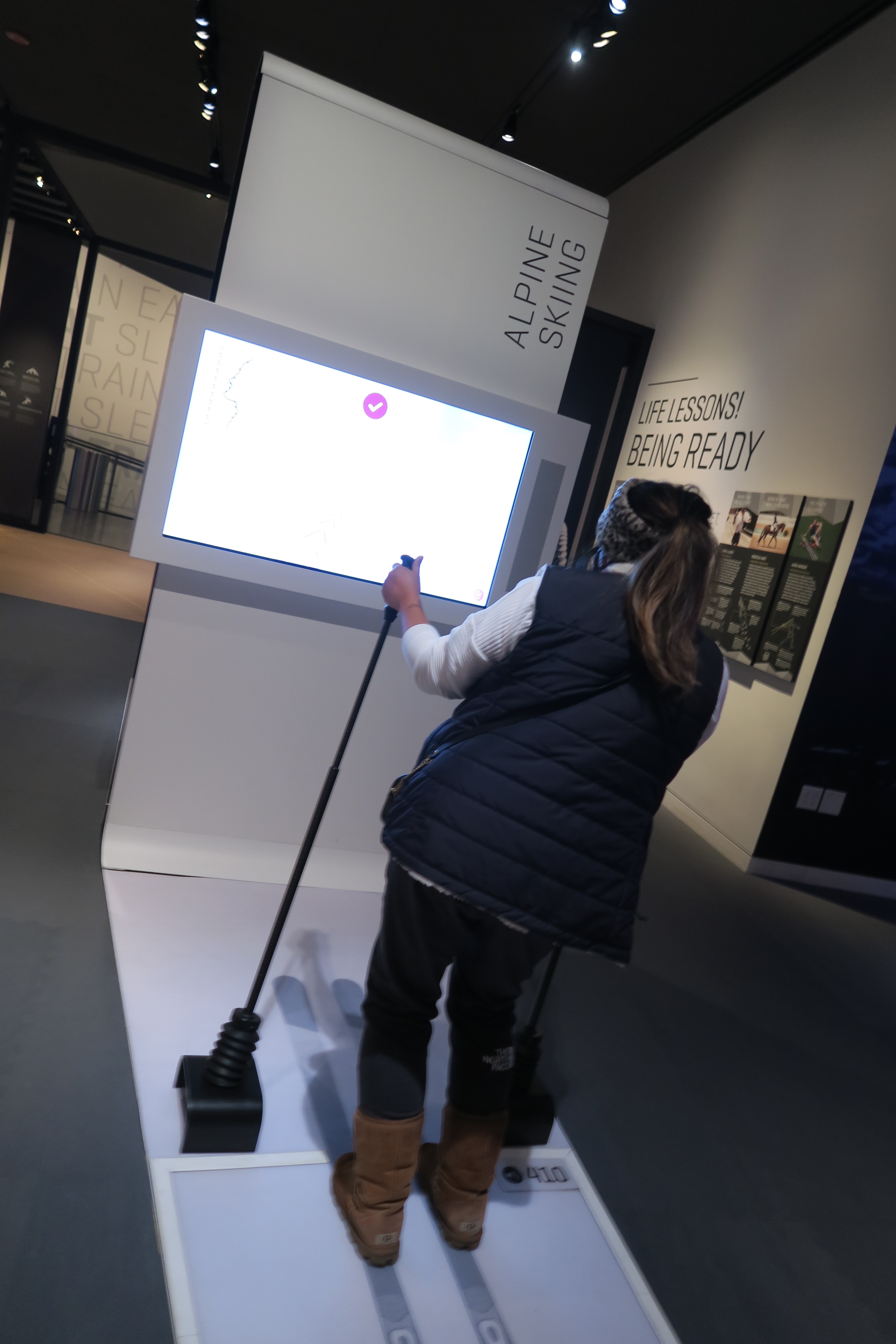 - US Olympic & Paralympic Museum– It snowed pretty heavy this day so we decided to do an indoor activity. This museum is 60,000 square feet so with only 10 guests inside it felt like we had the place to ourselves. When we arrived our temperatures were taken, coats hung up, & given a lanyard with a stylus to use with the touch screens. They take you to the elevator which goes to the top floor. The design is you start at the top & work yourself down. One of the floors is an interactive one, which includes a track to race an Olympian! It was really fun. Also, we got to see the Olympic torches from when it started to now (yup, Tokyo was already there!).