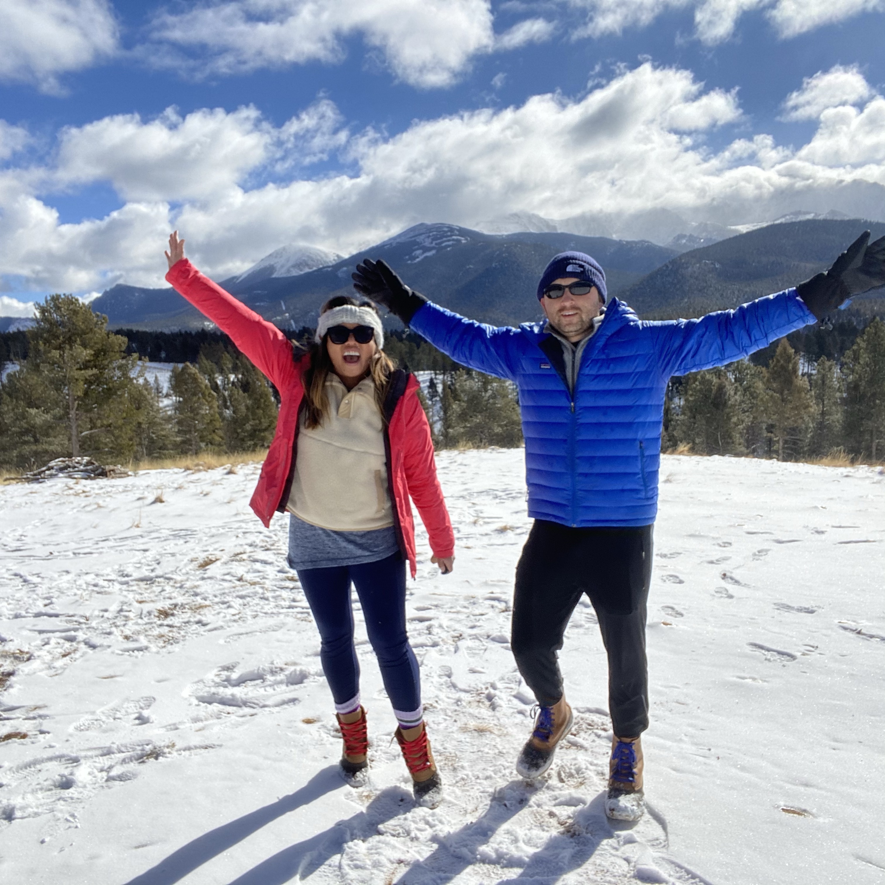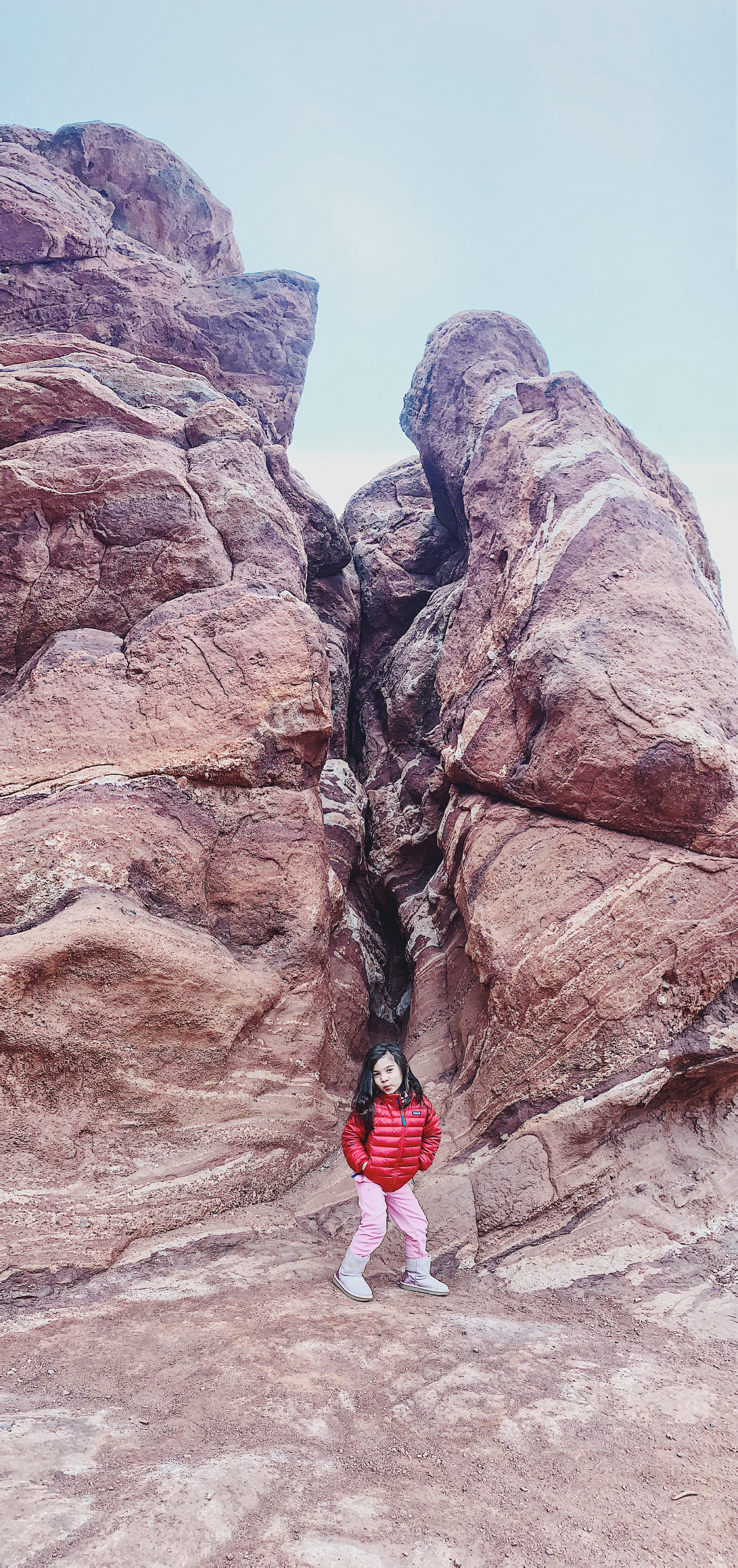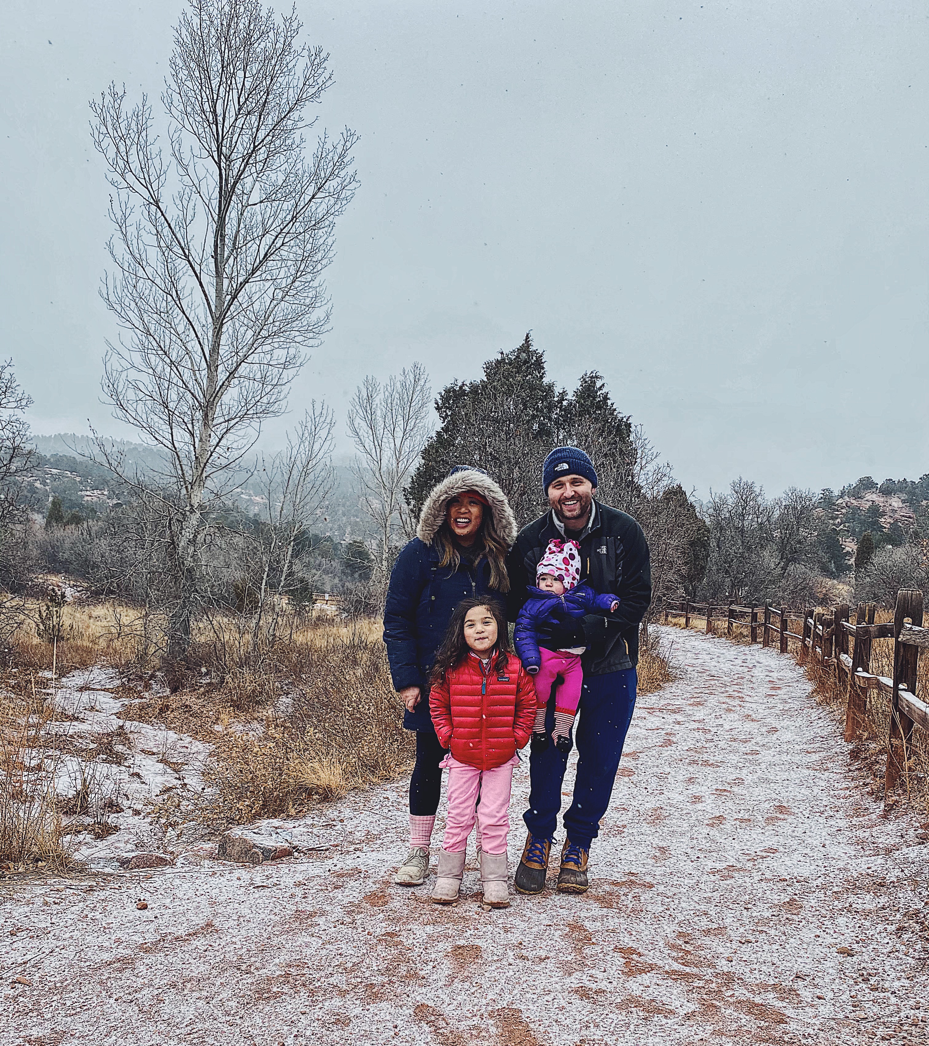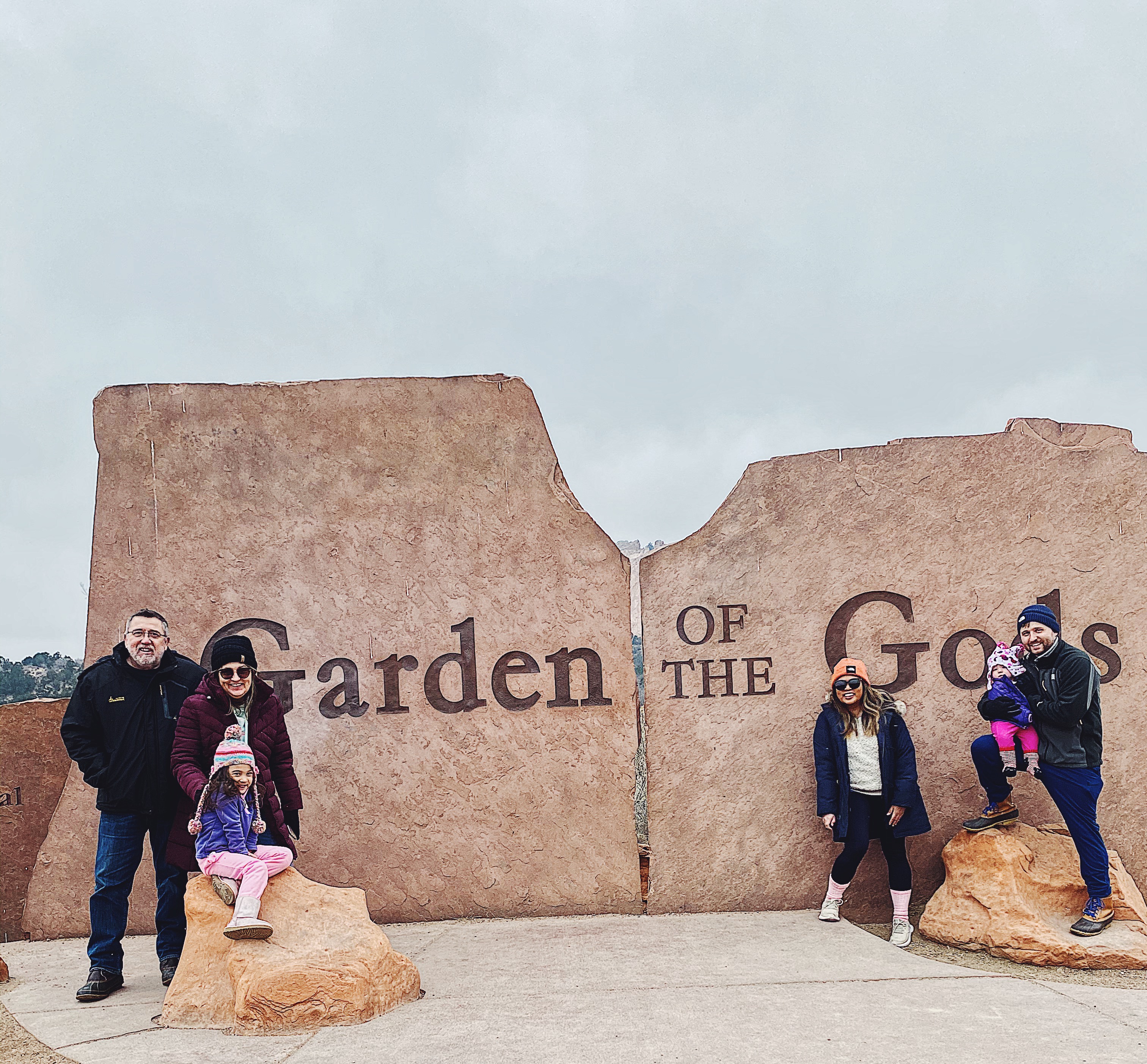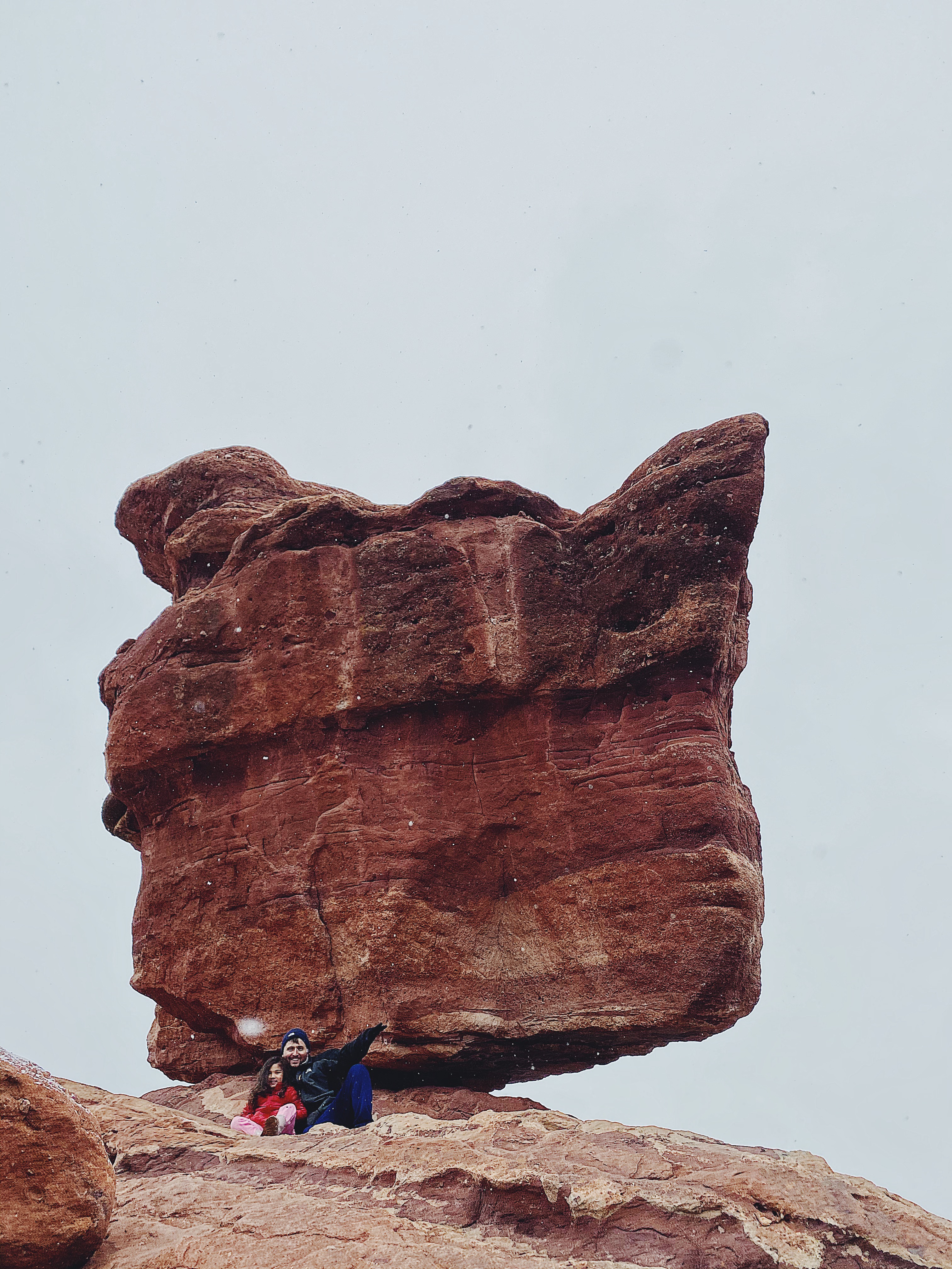 - Garden of the Gods– What a stunning place! You can either drive through the whole scene, hike, or drive to a spot & hike. We are always on borrowed time with the kiddos so I made sure to get to the spots we definitely wanted to see by driving to the nearest parking lot & hiking. We saw the balanced rock, Siamese twins, & giant footprints. The most magical part was when it snowed during our hike to the siamese twins.