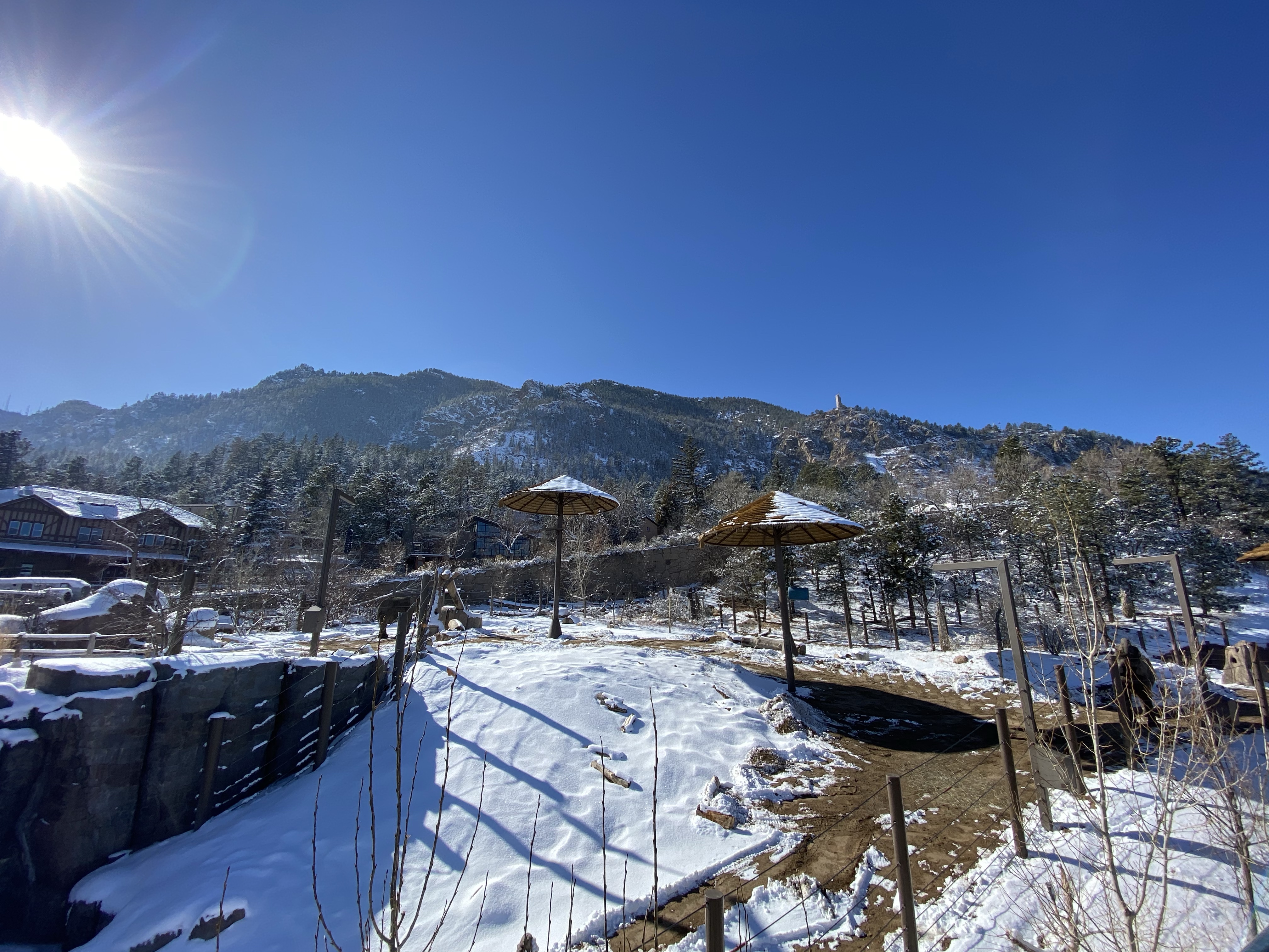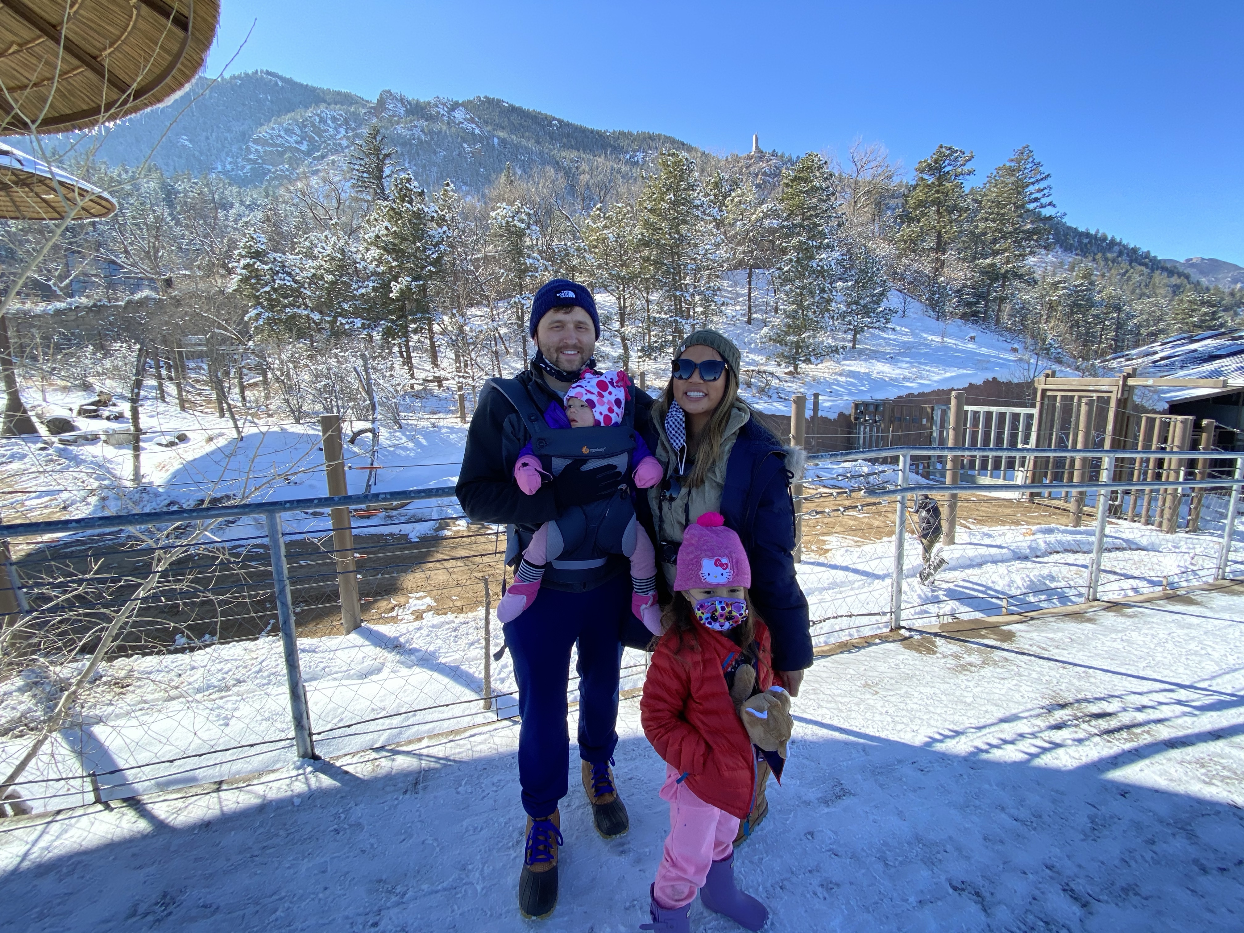 - Cheyenne Mountain Zoo– At an elevation of 6,714 feet, this zoo is the highest zoo in the USA. It snowed the day before so most of the animals were either inside or not there, but everyone still enjoyed it. The views from here gave us all heart eyes. The giraffes were inside, but we were still able to feed them lettuce. I can’t recommend this place enough- the views alone are worth it. *check online for their Covid restrictions*