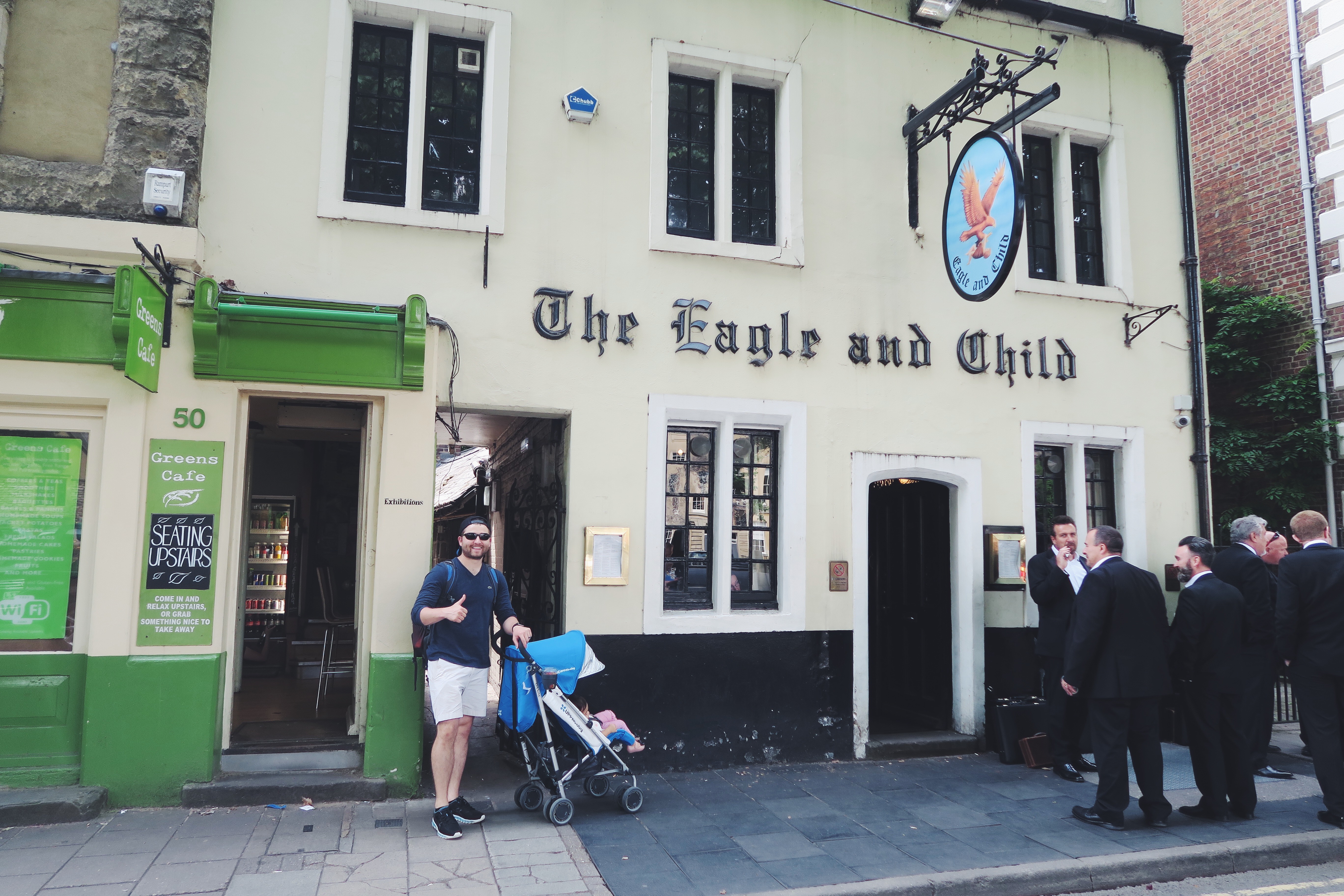 - The Eagle and Child- We had to drink pints where C. S. Lewis & J. R. R. Tolkien drank pints! We just couldn’t believe that we were at the same place as the Inklings were discussing their unfinished manuscripts, including The Lion, the Witch, and the Wardrobe. Also, we ate lunch here. It was the perfect timing since E fell asleep.