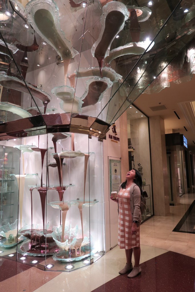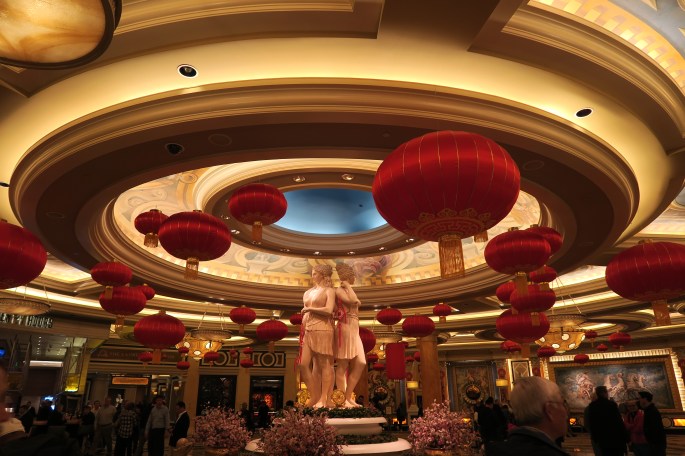 - Bellagio Hotel- After you watch the “dancing” fountains, check out inside the hotel. When walking in the lobby, look up to find the magnificent glass flowers on the ceiling. Chihuly is the artist who created this structure (fun fact Chihuly also has his art museum in Seattle by the space needle). The atrium is usually decorated in an amazing all flower display. In January, it was Chinese New Year theme; everything was made with flowers. Then, go around the corner to check out the chocolate waterfall. Grab a latte and a truffle then grab a sit and people watch 😉