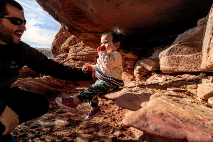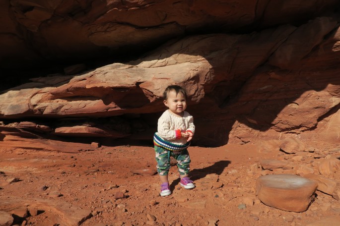 - Red Rock Canyon– Located 20 miles away, Red Rock offers a quiet moment away from all the lights and sounds of the Strip. We went hiking with our little babe in the Ergo. She wasn’t an expert walker yet, so we let her out of the carrier at a flat rest stop. She sat there picking up rocks and looking around. As the name says, the rocks look as if they were painted red. The vibrant red color is from iron oxide that has built up over centuries. It’s definitely breath-taking.