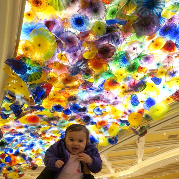 - Bellagio Fountains– In front of the Bellagio hotel on the strip is this beautiful water show. Our little babe was mesmerized!