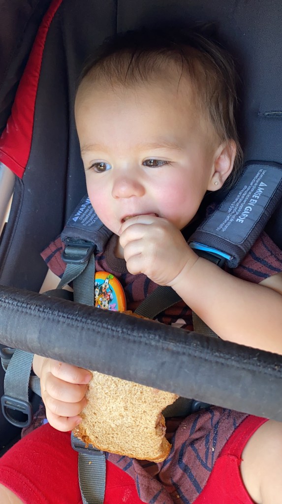 Since there is not currently a dining plan at Disney World and food can be expensive, we had to make a plan. Disney allows you to bring food in and even bring a small cooler (but I did see people with a Yeti cooler in a stroller!). We went to the local grocery store and bought food for our trip. The kids had lunchables for lunch (a big hit since they don’t eat it at home) and also peanut butter & jelly sandwiches. I also brought snacks (chips, z bars, fruit snacks) and drinks (milk & juice). At the grocery store, we also bought 3 gallons of water. We filled our Hydroflasks up with water before the park entry and were able to find water filling stations or requests free water at the restaurants or Starbucks. We did eat at the parks, as well, but bringing food for the kids helped with the budget a lot!